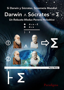 Si Darwin y Sócrates, Sciocracia Mundial es la opera prima de Paco Mota. La Sciocracia Mundial, abreviada con la letra griega Σ (leída "Sigma"), es la propuesta del autor para que los ciudadanos del mundo podamos, de manera ordenada, pacífica, democrática y etolegítima, luchar contra DEAM, el Déficit EtoAutoritativo Mundial. La sciocracia toma en consideración, e incluso pone en un pedestal, las ideas y descubrimientos fundamentales de Charles Darwin y de Sócrates. Darwin dedujo que todos los seres humanos pertenecemos a una misma especie, pariente de todas las demás especies por ascendencia evolutiva de millones de años. Por lo tanto, los decisores políticos de base debemos ser todos los seres humanos raciocognitivamente competentes. Sócrates vio que, para alcanzar decisiones razonables, ya fuesen individuales o colectivas, políticas o no, no tiene el mismo valor la opinión de un ser humano (o agente) informado, o razonablemente educado, en plenas facultades cognitivas y mentales, que la de uno fehacientemente desinformado, ignorante, o cognitivamente comprometido o limitado. Si tenemos en cuenta lo que nos enseñaron Darwin y Sócrates, debemos montar una Sciocracia Mundial. Si queremos acabar con DEAM, debemos montar Σ, y debemos hacerlo lo antes posible.